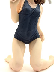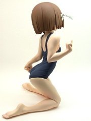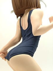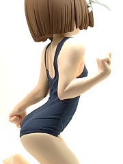 「すくみずさんプチアスリートボディ」組み立てる際の注意点。 このキット固有の注意点など(WHF有明16にて添付してあったペーパーの内容に塗装についてなどを加筆。) <組立について> 表面処理 特にテカりのある部分は離型剤が多く付着していますので、塗装前に、洗剤でよく洗い、 600番程度のペーパーをかけて表面の照かりを落としてください。 パーツ接合部の調整 足と胴体のパーツの合いが あまり良く有りません、まず股からお尻にかけてを基準として合わせ、 足が(胴体より)はみ出た部分を削り、隙間が開く部分をパテ等で埋めてください。 なぞな造形のお好み修正 もものパーツの極端な立体が気になる場合は、 凹んでいる部分を埋め戻す方向で調整するとよいです。 接地感の調整 足と胴体の接合状態を調整完了後に、仮止めして、 ヒザが削れないように注意して、なるべく重心が後ろになるように スネと足の甲の部分を削り慎重に調整してください。 ぎりぎりまで体を前傾させたポーズにしたので調整が大変です。 私は調整が中途半端だった為、作例はすぐ前に倒れそうになります。 水着をひっぱっている箇所の調整 指と水着の間が開いてしまっているので、 水着の先端を盛り足すことで調整してください。 私は調整をサボった為、作例は硬い突起が突き出しているように見えます。 髪とリボンの固定 接合部に切り欠き有りますが分かりづらいかもしれないので、 作例の写真を参考に固定してください、また、お好みでより雰囲気のよくなる位置を探してください。 <作例で使用した塗料、塗装などについて> 下地 つや消しホワイト。明るく発色するわずかに暖色寄りの白が有ればそれが好ましい。 肌 ガイアカラーのフレッシュセット1 を使用。 ベース 051 ノーツフレッシュ シャドウ シャドー用フレッシュ(オレンジ系) 赤らめたい部分 シャドー用フレッシュ(ピンク系) いずれの色も、フラットベースを白っぽく粉が吹かない程度まで過剰に混ぜて使用。 シャドウは普通 立体のメリハリを付ける目的で部分的に吹き付けるようですが、 私にそんな器用な事は出来ないので、うすめ液でサラサラに薄めたシャドー用フレッシュ(オレンジ系)を 大よそ影側にダイナミックに吹き付けています。 イメージ的にはシャドウ用カラーで薄い皮膜を作るような感じで全体的に吹いています。 薄い皮膜は視点に対して回り込み部分ほど濃くなりシャドウの役割を果たすはずです。 また照明のあたる部分ほどベースの色が見えます。写真を見る限りそう見えます。 ほお、ひざ、ひじ、末端など、赤らめたい部分にシャドー用フレッシュ(ピンク系)を吹きます。 最後につや消しよりわずかに光沢のあるフラットクリヤーをうすめ液でサラサラに薄めて吹きます。 これにより、表面をほんのわずかに溶かして コナっぽさを殺しつつ 適度なデコボコ感を残しつつ わずかにツヤを出します。 人肌に光が反射したときのデコボコキラキラ感を目指します。 光沢の度合いはお好みで調節してください。(作例では光沢が弱すぎました。) エナメルでつや消しで濃いピンクっぽい色を作りスミ入れをしています。 くぼみ部分のトーンダウンして見える程度、スミ入れしてあるかどうか分からない程度を目標にしました。 水着 タミヤカラーアクリル塗料(水性)フラットブルー + フラットレッド、フラットクリヤー 水着の資料写真を眺めながら、フラットブルーをベースにフラットレッドをわずかに混ぜてスク水ブルーを作り吹きつけます。 仕上げ用に(これも過剰にフラットを混ぜた)フラットクリヤーに調合済みのスク水ブルーを少量混ぜたものを吹き付けます。 青みがかったコナっぽいクリヤー層が、視点に対して回り込んだ部分や光の強く当たる部分ほど青っぽくキラキラして、 スクール水着の毛羽立ち感を再現します。コナっぽさが肝なので トップコートなどを吹いてはいけません。 とどめにラッカー用うすめ液を軽く吹いて溶かし固めます、 吹きすぎると毛羽立ちが消え 繊維らしくないツヤが出てしまいます。 水着の裏地の塗装は忘れました。 髪の毛 タミヤカラーアクリル塗料(水性)レッドブラウン、レッドブラウン + バフ 調整につや消しクリヤーオレンジ。 失敗気味の塗装なので、反省文になってます。 陶器のヘルメットをかぶっているみたいで失敗です。 重そうに見えないように、髪の毛 末端ほど、色を明るめに調節していたのですが、 やり過ぎないように色の変化を控えめにしたら、効果が思わしくありませんでした。 色もいまいち正解ではありません、軽すぎず重過ぎない雰囲気を目指していました。 とどめにラッカー用うすめ液を軽く吹いて溶かし固めつつ、 コナっぽさを殺して意図的にわずかな光沢を発生させています。 髪の毛も表面がザラザラしてしまいましたが、やはり失敗です。 リターダー入りのエアブラシ用うすめ液を使用してコナつかないようにしたほうが良いです。 顔 まつげ、黒目、タミヤカラ